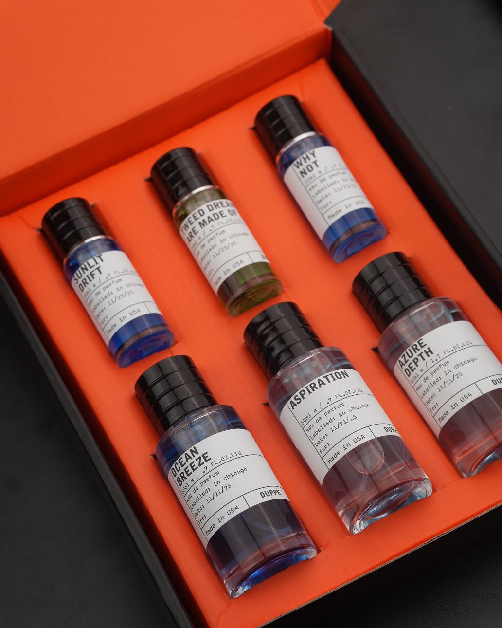 Mediocrity isn't really our thing. The "For Him" set is a collection of pure alpha energy—six scents designed to dominate the room. Crisp, clean, spicy, and woody; we’ve bottled confidence in every form. Warning: May cause an unexplained increase in compliments and attention.