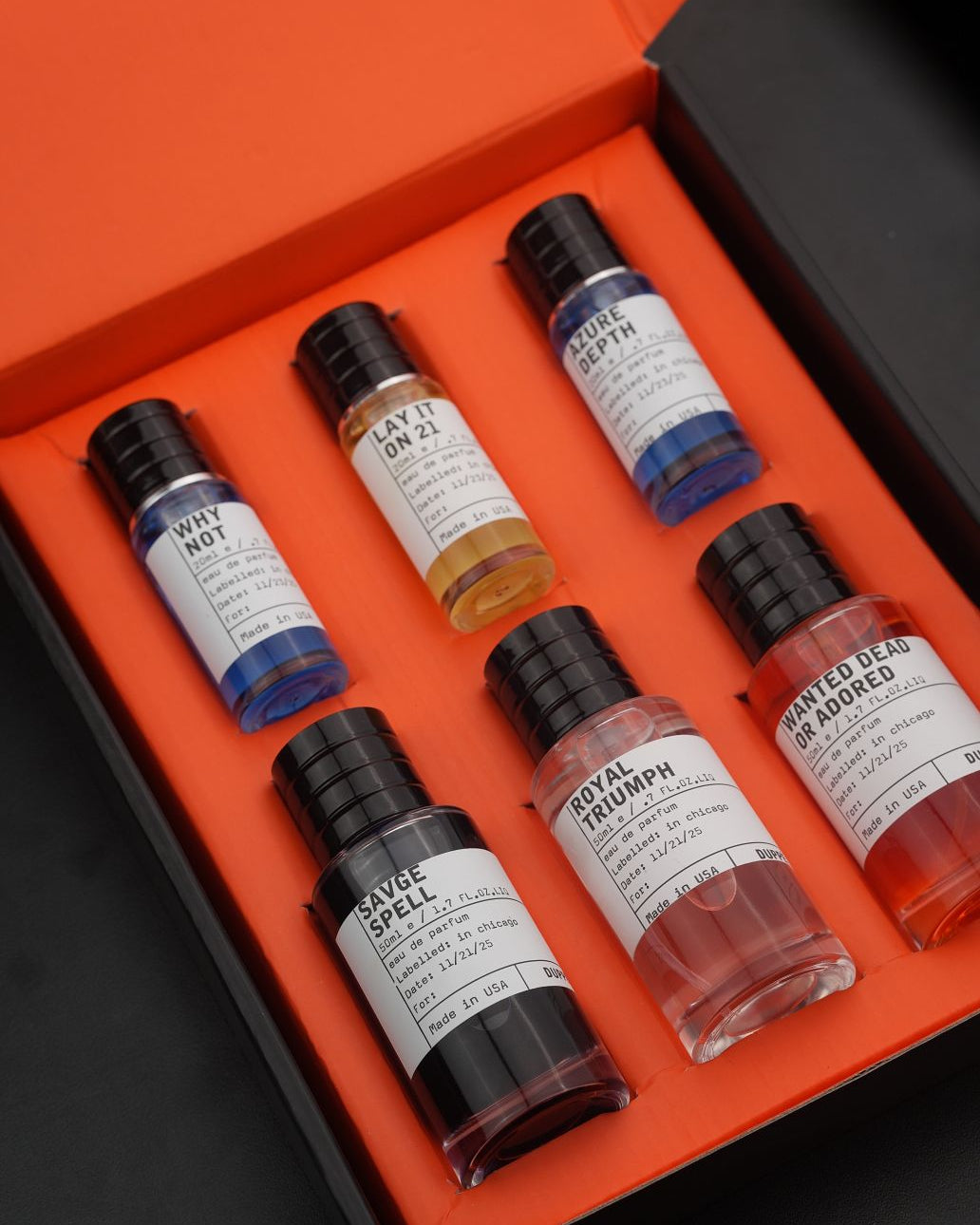 Mediocrity isn't really our thing. The "For Him" set is a collection of pure alpha energy—six scents designed to dominate the room. Crisp, clean, spicy, and woody; we’ve bottled confidence in every form. Warning: May cause an unexplained increase in compliments and attention.